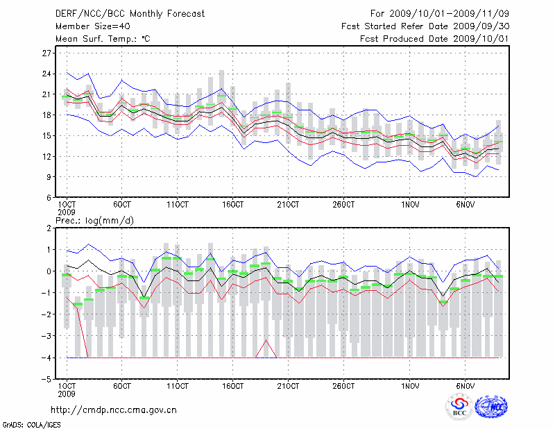 蚌 埠 (LAT:32.95 LON:117.37) 2009-10-01        预测