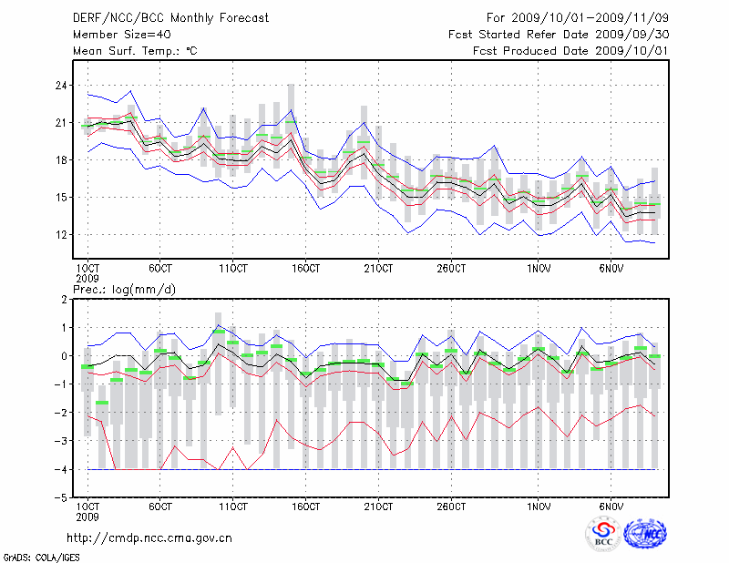 东 台 (LAT:32.87 LON:120.32) 2009-10-01        预测