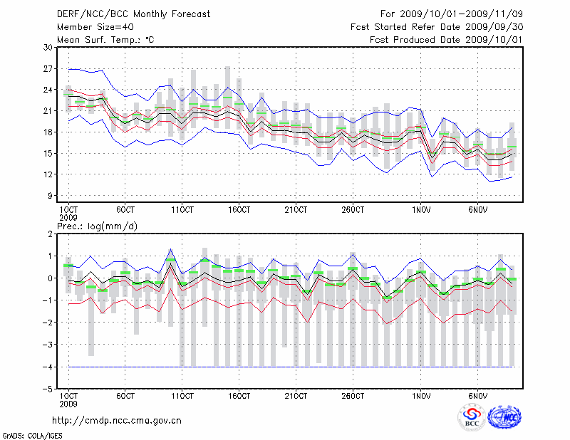南 昌 (LAT:28.60 LON:115.92) 2009-10-01        预测