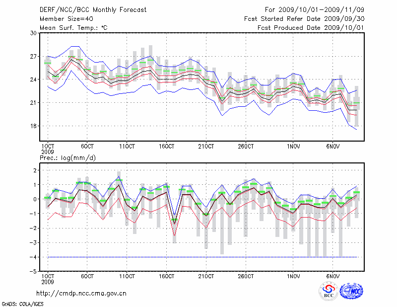 福 州 (LAT:26.08 LON:119.28) 2009-10-01        预测