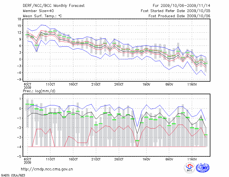 呼和浩特 (LAT:40.82 LON:111.68) 2009-10-06        预测