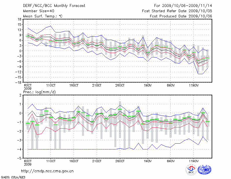 牡 丹 江 (LAT:44.57 LON:129.60) 2009-10-06        预测