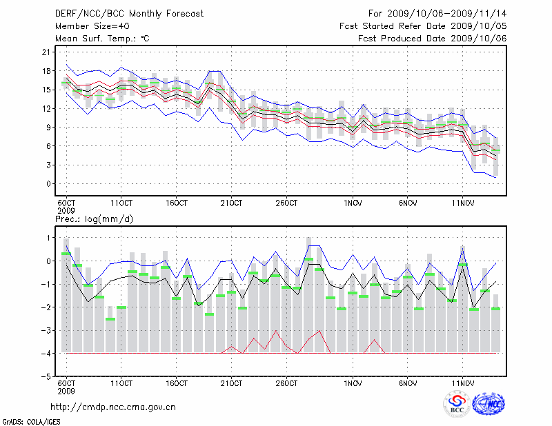 北 京 (LAT:39.93 LON:116.28) 2009-10-06        预测