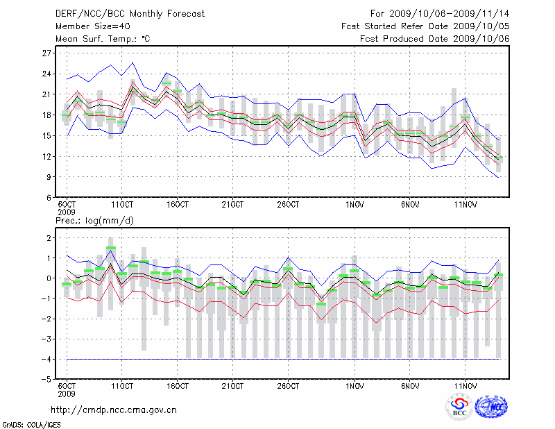 南 昌 (LAT:28.60 LON:115.92) 2009-10-06        预测
