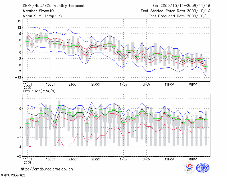 哈 尔 滨 (LAT:45.75 LON:126.77) 2009-10-11        预测