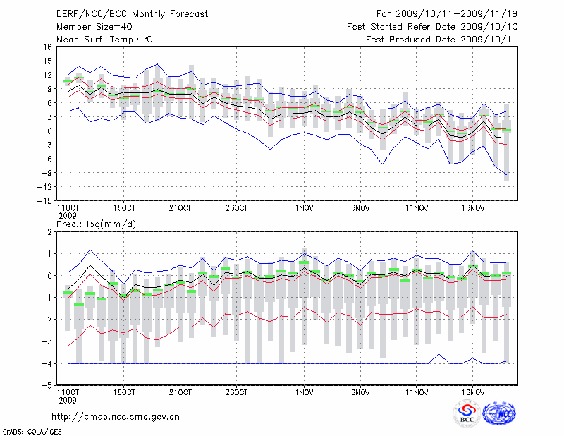 塔 城 (LAT:46.73 LON:83.00) 2009-10-11        预测