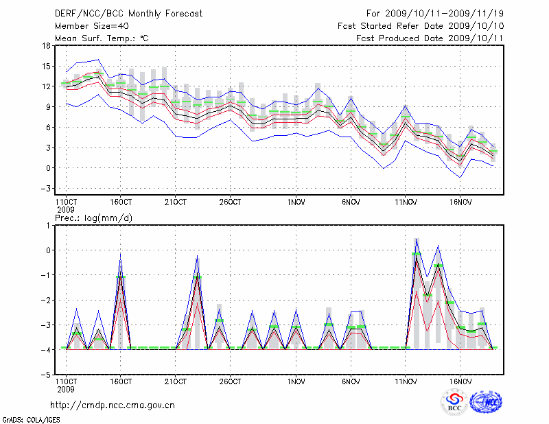若 羌 (LAT:39.03 LON:88.17) 2009-10-11        预测