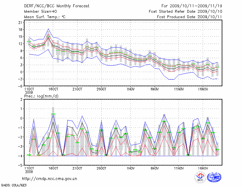 哈 密 (LAT:42.82 LON:93.52) 2009-10-11        预测
