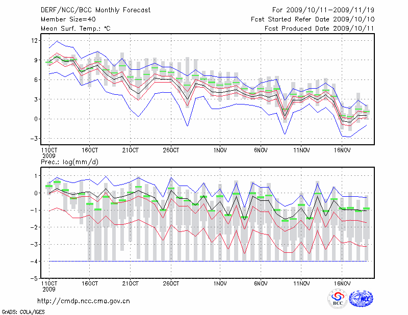 临 夏 (LAT:35.58 LON:103.18) 2009-10-11        预测
