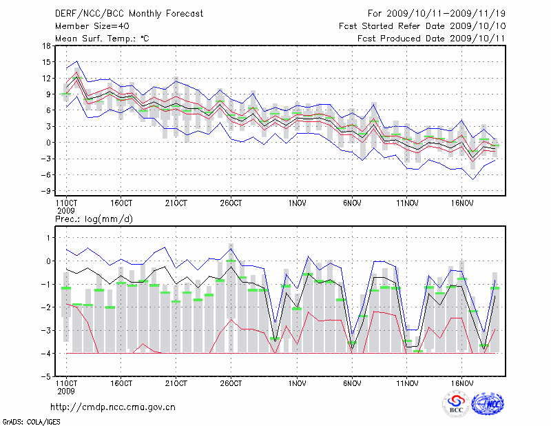 包 头 (LAT:40.66 LON:109.85) 2009-10-11        预测