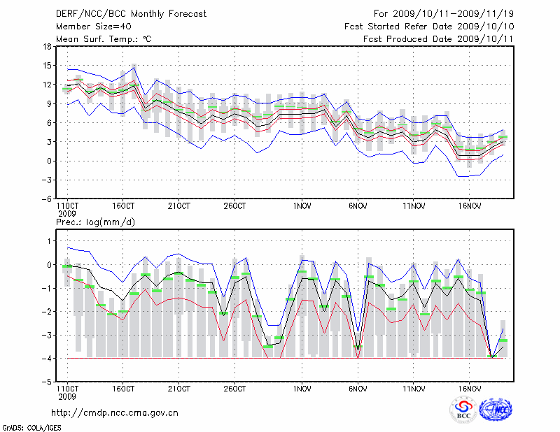 银 川 (LAT:38.48 LON:106.22) 2009-10-11        预测