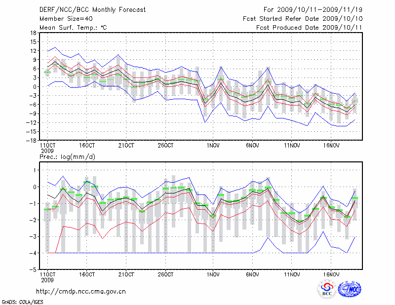锡林浩特 (LAT:43.95 LON:116.07) 2009-10-11        预测