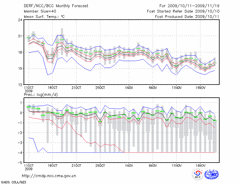 临 沧 (LAT:23.95 LON:100.22) 2009-10-11        预测
