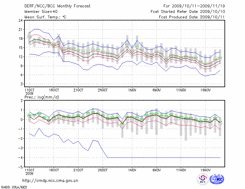 毕 节 (LAT:27.30 LON:105.23) 2009-10-11        预测