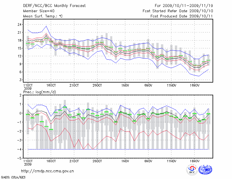 南 京 (LAT:32.00 LON:118.80) 2009-10-11        预测