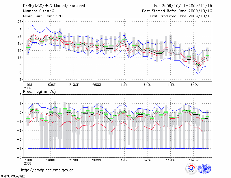 南 昌 (LAT:28.60 LON:115.92) 2009-10-11        预测