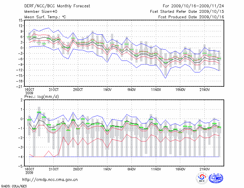 哈 尔 滨 (LAT:45.75 LON:126.77) 2009-10-16        预测