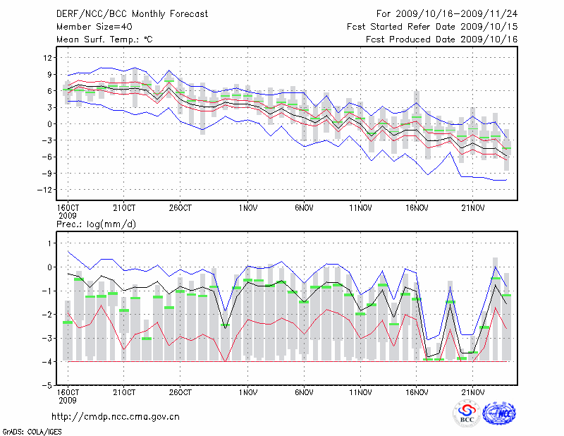 呼和浩特 (LAT:40.82 LON:111.68) 2009-10-16        预测