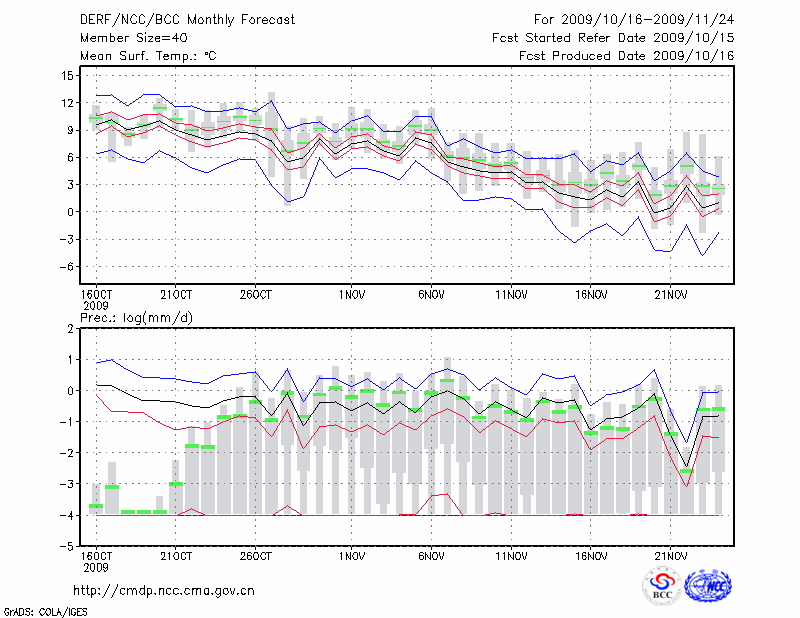 延 安 (LAT:36.60 LON:109.50) 2009-10-16        预测