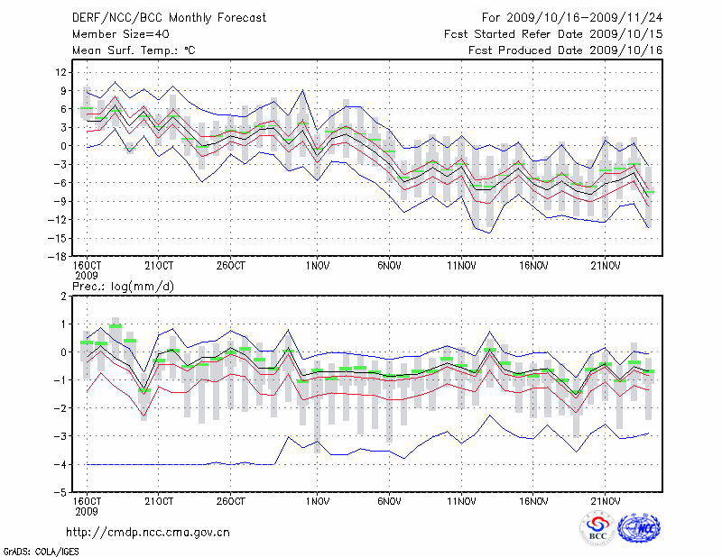 牡 丹 江 (LAT:44.57 LON:129.60) 2009-10-16        预测