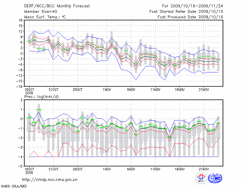 长 春 (LAT:43.90 LON:125.22) 2009-10-16        预测