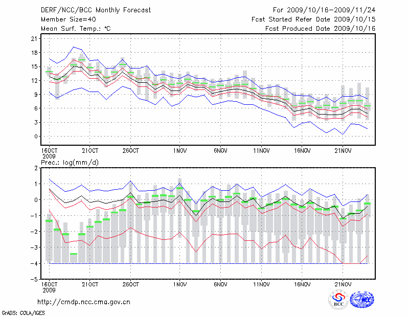 西 安 (LAT:34.30 LON:108.93) 2009-10-16        预测