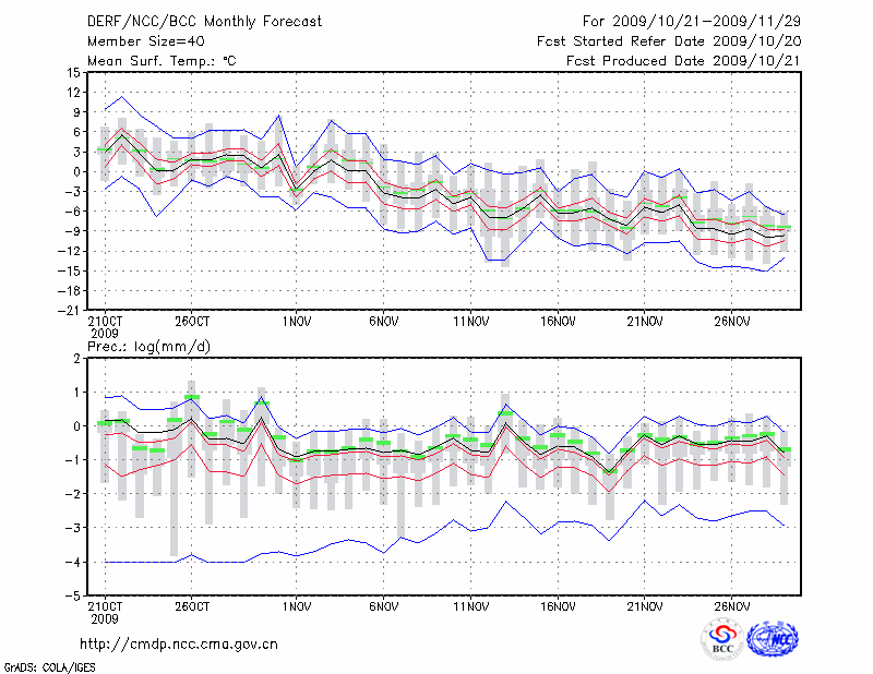 牡 丹 江 (LAT:44.57 LON:129.60) 2009-10-21        预测