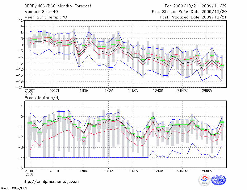 锡林浩特 (LAT:43.95 LON:116.07) 2009-10-21        预测