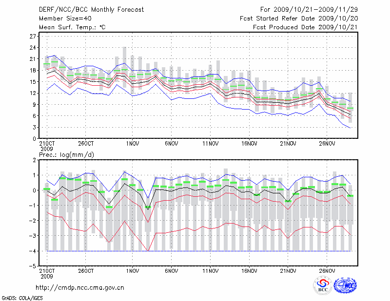岳 阳 (LAT:29.38 LON:113.08) 2009-10-21        预测