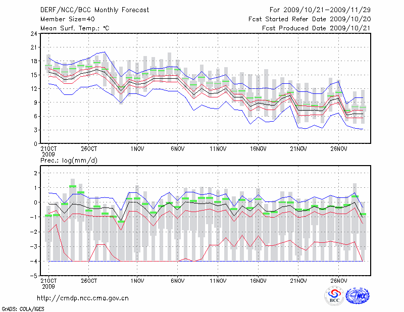 南 京 (LAT:32.00 LON:118.80) 2009-10-21        预测