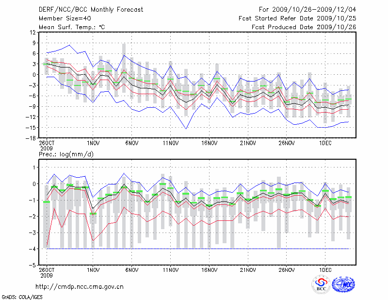 哈 尔 滨 (LAT:45.75 LON:126.77) 2009-10-26        预测