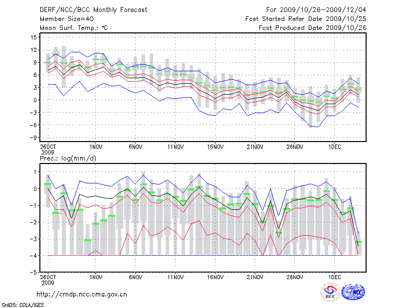 西 峰 镇 (LAT:35.73 LON:107.63) 2009-10-26        预测