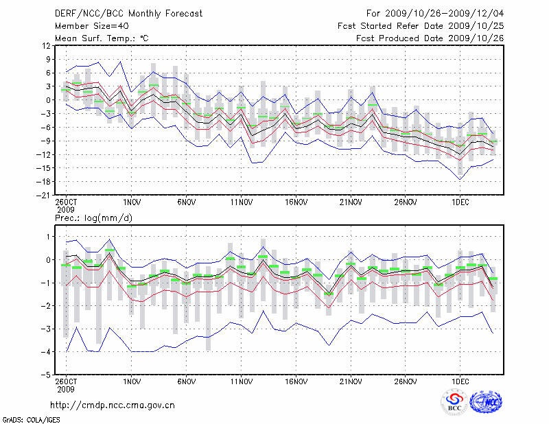 牡 丹 江 (LAT:44.57 LON:129.60) 2009-10-26        预测