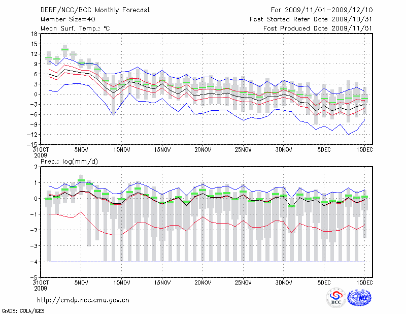 伊 宁 (LAT:43.95 LON:81.33) 2009-11-01        预测