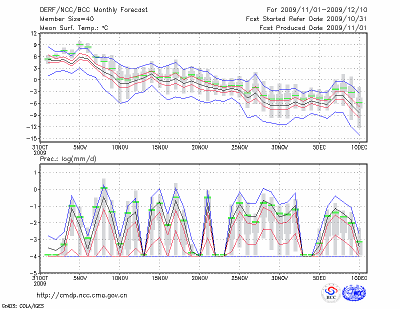 哈 密 (LAT:42.82 LON:93.52) 2009-11-01        预测