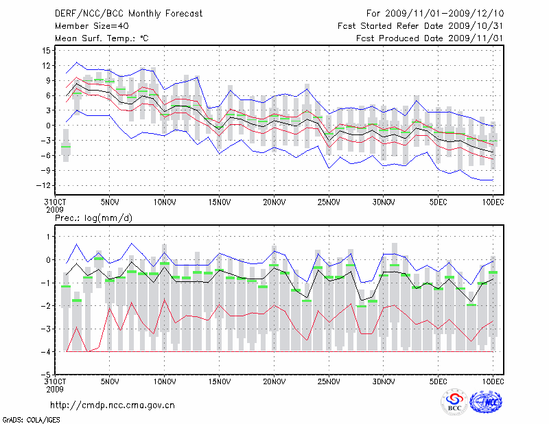 营 口 (LAT:40.67 LON:122.20) 2009-11-01        预测