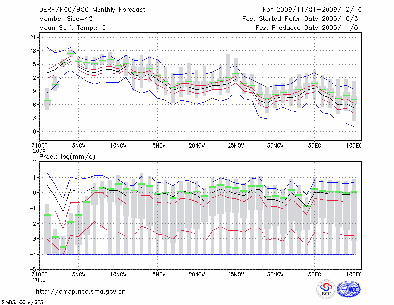 岳 阳 (LAT:29.38 LON:113.08) 2009-11-01        预测