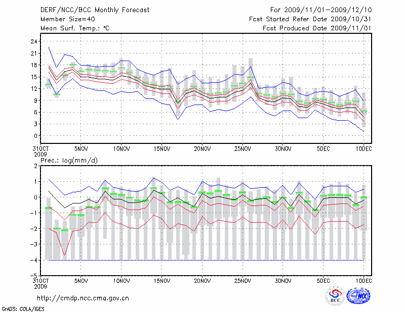 南 昌 (LAT:28.60 LON:115.92) 2009-11-01        预测