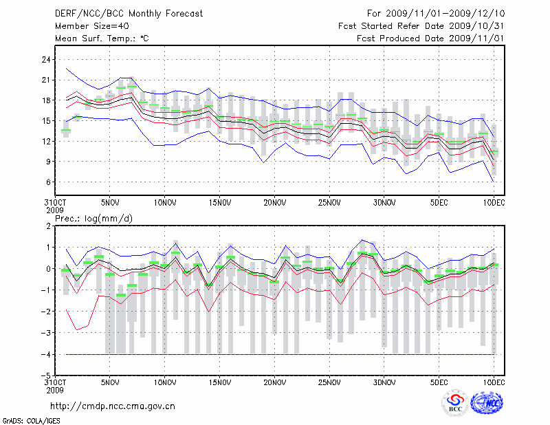 温 州 (LAT:28.02 LON:120.67) 2009-11-01        预测