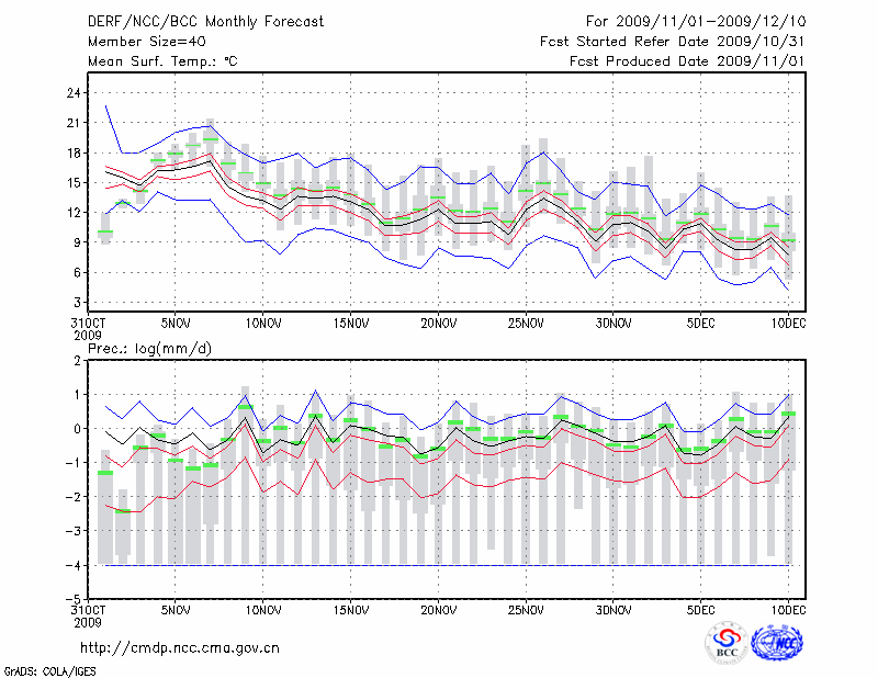 浦 城 (LAT:27.92 LON:118.53) 2009-11-01        预测