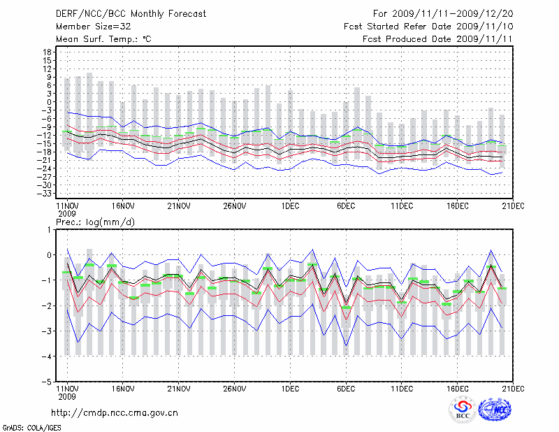 嫩 江 (LAT:49.17 LON:125.23) 2009-11-11        预测