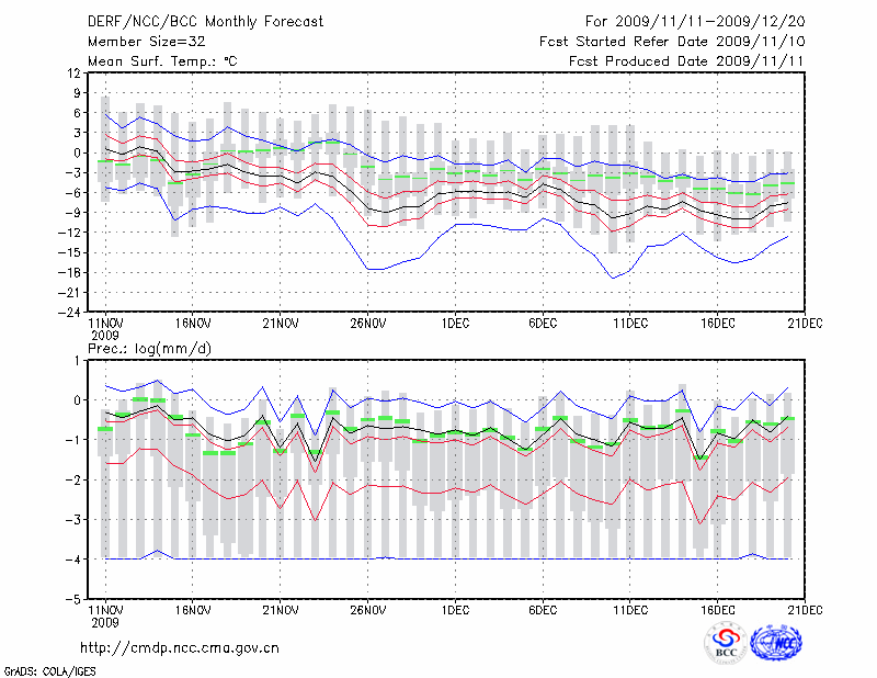 乌 苏 (LAT:44.43 LON:84.66) 2009-11-11        预测