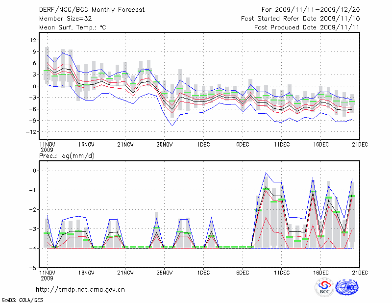 且 末 (LAT:38.15 LON:85.55) 2009-11-11        预测
