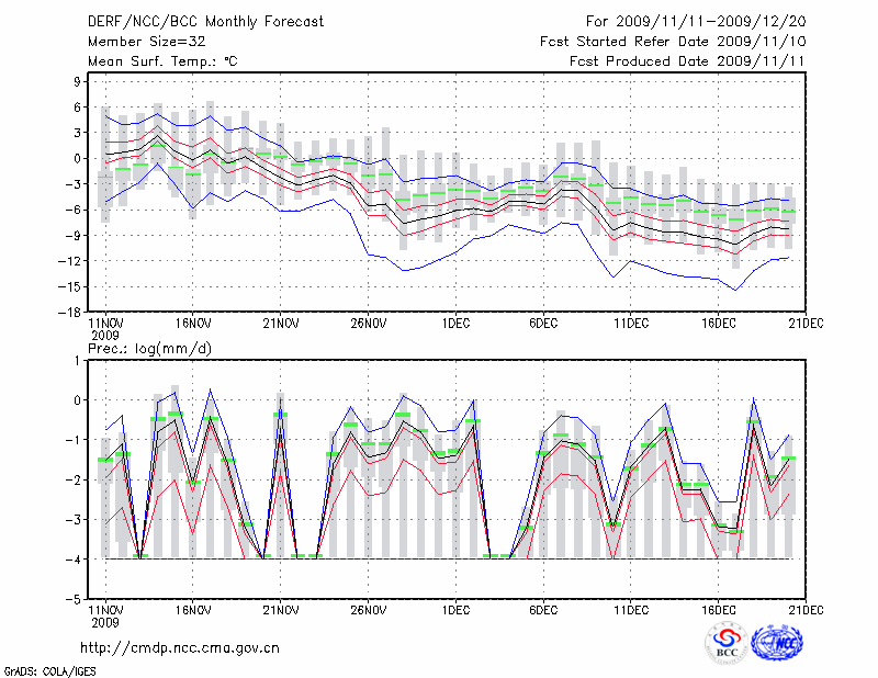 哈 密 (LAT:42.82 LON:93.52) 2009-11-11        预测
