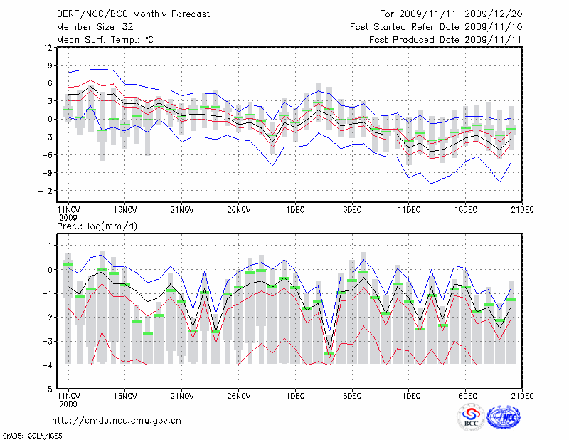 西 峰 镇 (LAT:35.73 LON:107.63) 2009-11-11        预测