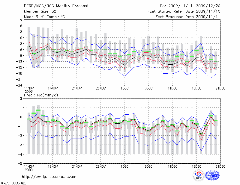 牡 丹 江 (LAT:44.57 LON:129.60) 2009-11-11        预测