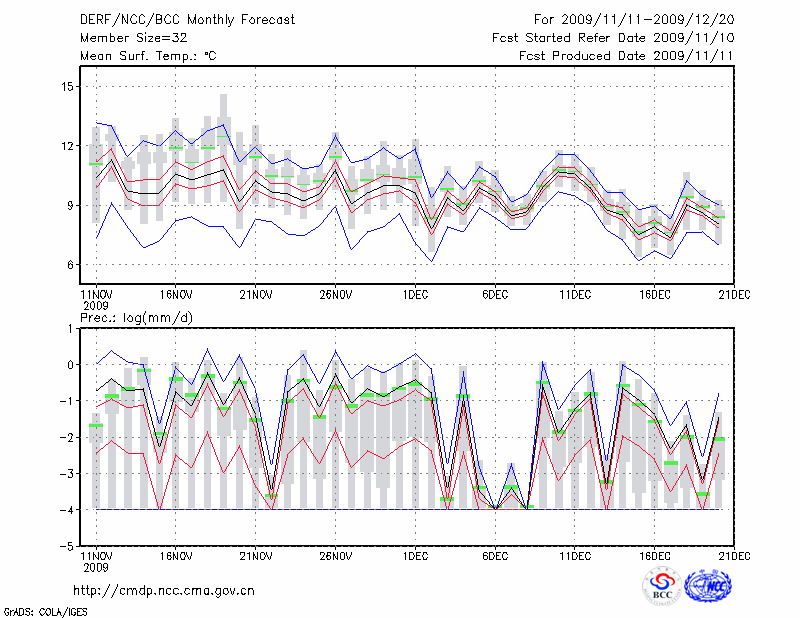 丽 江 (LAT:26.83 LON:100.47) 2009-11-11        预测