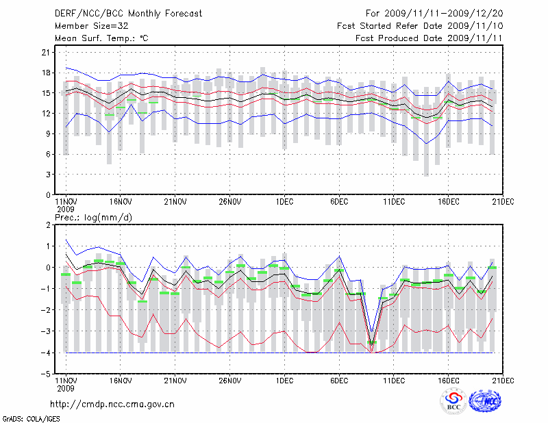 蒙 自 (LAT:23.38 LON:103.38) 2009-11-11        预测