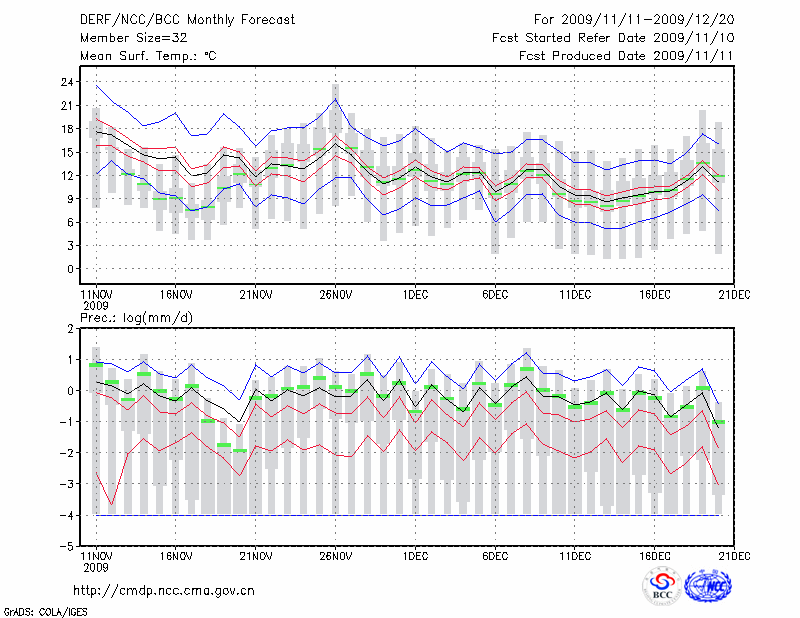 赣 州 (LAT:25.85 LON:114.95) 2009-11-11        预测