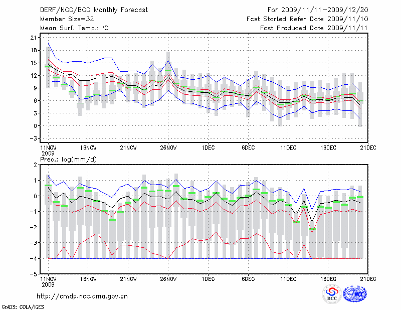 杭 州 (LAT:30.23 LON:120.17) 2009-11-11        预测